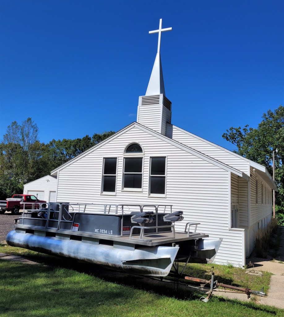 He agreed to paint the church pristine white, no charge for labor in exchange to park his boat until it sold. His ‘boat’ was an ugly old thing. Three weeks and it was still blocking the church.